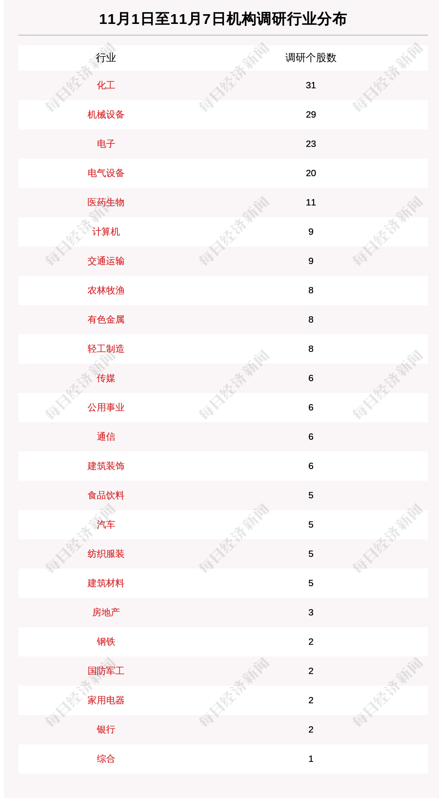 从行业上来看,机构调研主要集中于化工、机械设备、电子。