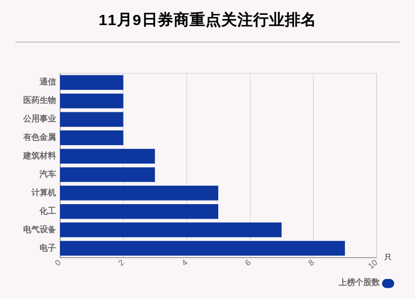 从券商对行业的关注度来看,券商关注个股数居前的行业分别是电子、电气设备、化工。