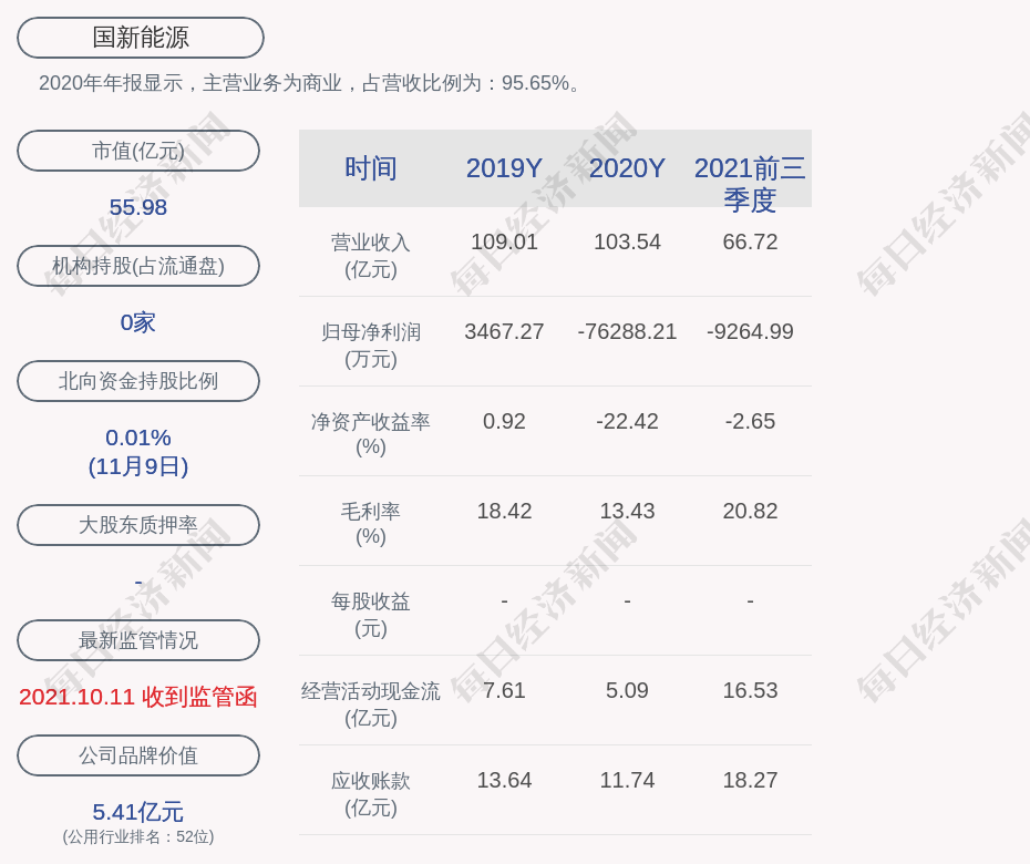 2020年年报显示,国新能源的主营业务为商业,占营收比例为:95.65%。