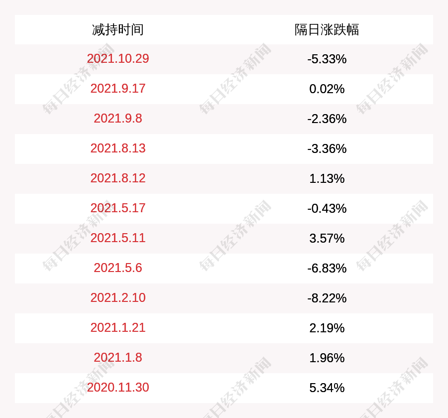 3. 药石科技上次发布减持公告是2021年10月29日,第二个交易日下跌5.33%,药石科技近一年共发布13次减持类公告。更多关键信息,请搜索“道达号”。