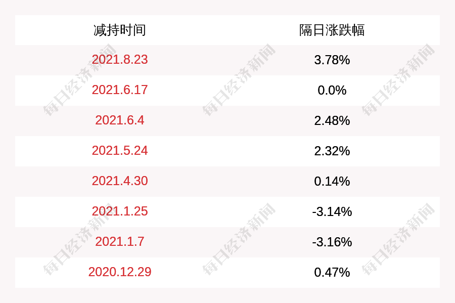 2. 威唐工业上次发布减持公告是2021年08月23日,第二个交易日上涨3.78%,威唐工业近一年共发布9次减持类公告。更多关键信息,请搜索“道达号”。