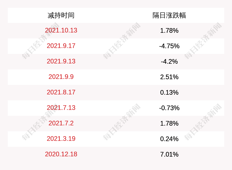 3. 恒信东方上次发布减持公告是2021年10月13日,第二个交易日上涨1.78%,恒信东方近一年共发布10次减持类公告。更多关键信息,请搜索“道达号”。