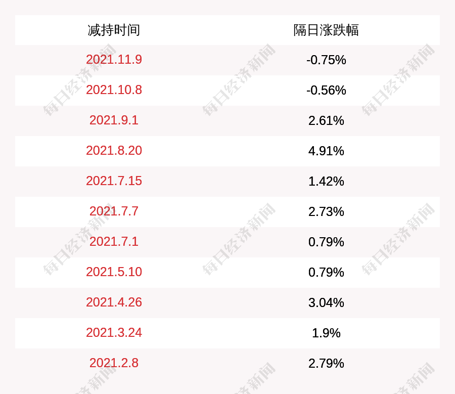 2. 太龙股份上次发布减持公告是2021年11月09日,第二个交易日下跌0.75%,太龙股份近一年共发布12次减持类公告。