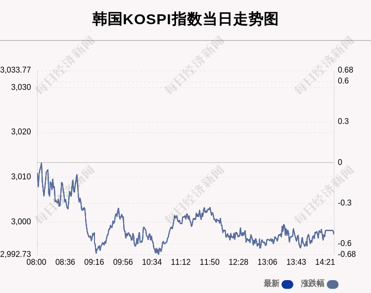 每经AI快讯:北京时间11月23日14:00,韩国KOSPI指数收盘下跌15.92点,跌幅为0.53%,报2997.33点。