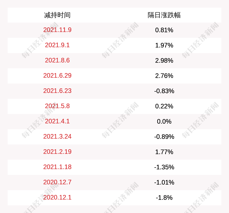 2. 伟隆股份上次发布减持公告是2021年11月09日,第二个交易日上涨0.81%,伟隆股份近一年共发布13次减持类公告。