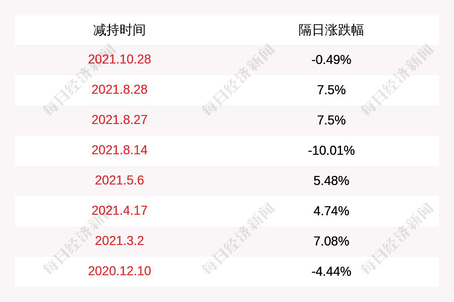 3. 北方稀土上次发布减持公告是2021年10月28日,第二个交易日下跌0.49%,北方稀土近一年共发布9次减持类公告。
