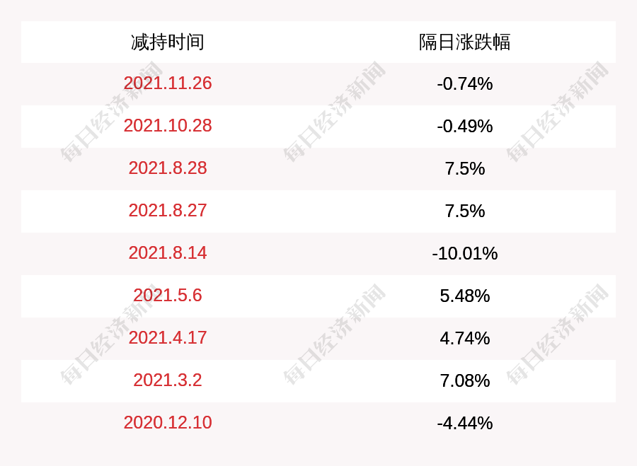 3. 北方稀土上次发布减持公告是2021年11月26日,第二个交易日下跌0.74%,北方稀土近一年共发布10次减持类公告。