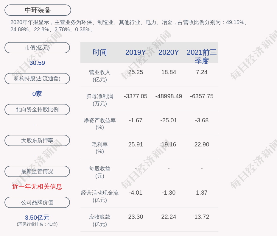 2020年年报显示,中环装备的主营业务为环保、制造业、其他行业、电力、冶金,占营收比例分别为:49.15%、24.89%、22.8%、2.78%、0.38%。