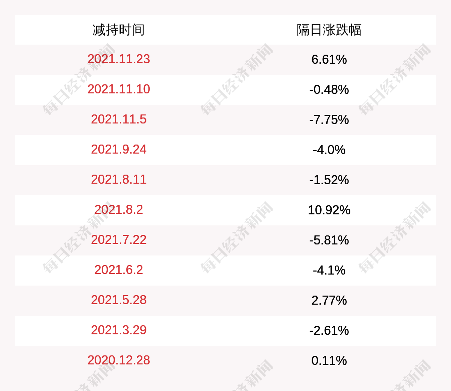 3. 舒泰神上次发布减持公告是2021年11月23日,第二个交易日上涨6.61%,舒泰神近一年共发布12次减持类公告。