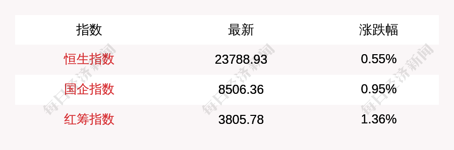 每经AI快讯:北京时间12月2日16:00,恒生指数收盘上涨130.01点,涨幅为0.55%,报收23788.93点;国企指数收盘上涨80.12点,涨幅为0.95%,报收8506.36点;红筹指数收盘上涨51.18点,涨幅为1.36%,报收3805.78点。南向资金当日净流入13.69亿港元。