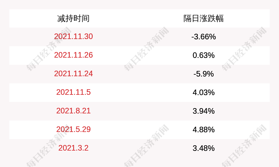 2. 银河磁体上次发布减持公告是2021年11月30日,第二个交易日下跌3.66%,银河磁体近一年共发布8次减持类公告。