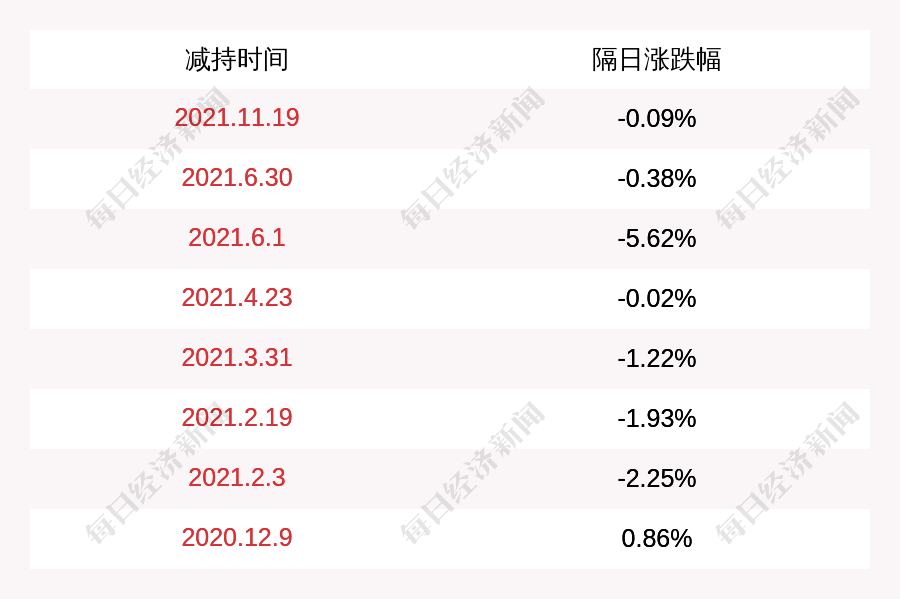 3. 正海生物上次发布减持公告是2021年11月19日,第二个交易日下跌0.09%,正海生物近一年共发布9次减持类公告。