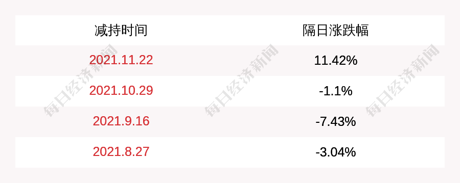 2. 华业香料上次发布减持公告是2021年11月22日,第二个交易日上涨11.42%,华业香料近一年共发布5次减持类公告。