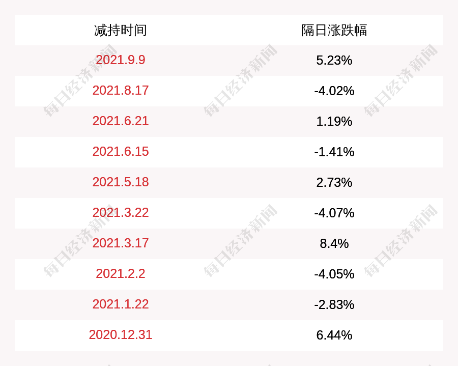 2. 怡达股份上次发布减持公告是2021年09月09日,第二个交易日上涨5.23%,怡达股份近一年共发布11次减持类公告。