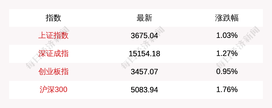 每经AI快讯:北京时间12月9日11:30,上证指数早盘上涨37.47点,涨幅为1.03%,报收3675.04点,成交额3424.13亿元;深证成指上涨189.72点,涨幅为1.27%,报收15154.18点,成交额4330.1亿元;创业板指上涨32.37点,涨幅为0.95%,报收3457.07点,成交额1599.34亿元;沪深300上涨88.01点,涨幅为1.76%,报收5083.94点,成交额2572.64亿元。
