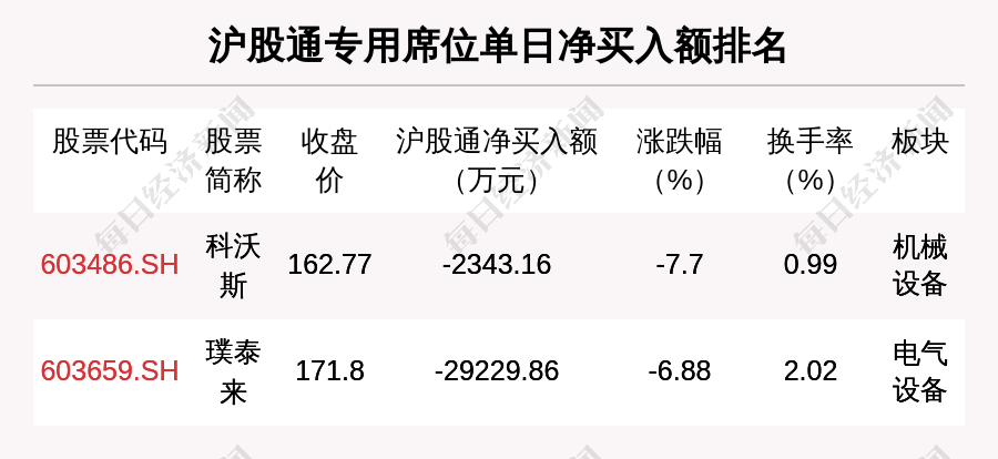在龙虎榜中,涉及沪股通专用席位的个股有2只,璞泰来的沪股通专用席位净卖出额最大,净卖出2.92亿元。