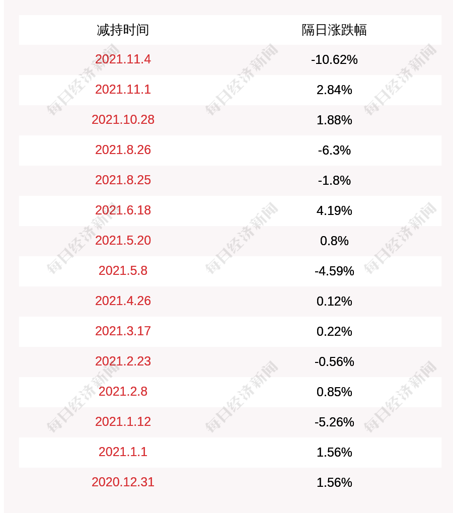 2. 高澜股份上次发布减持公告是2021年11月04日,第二个交易日下跌10.62%,高澜股份近一年共发布16次减持类公告。