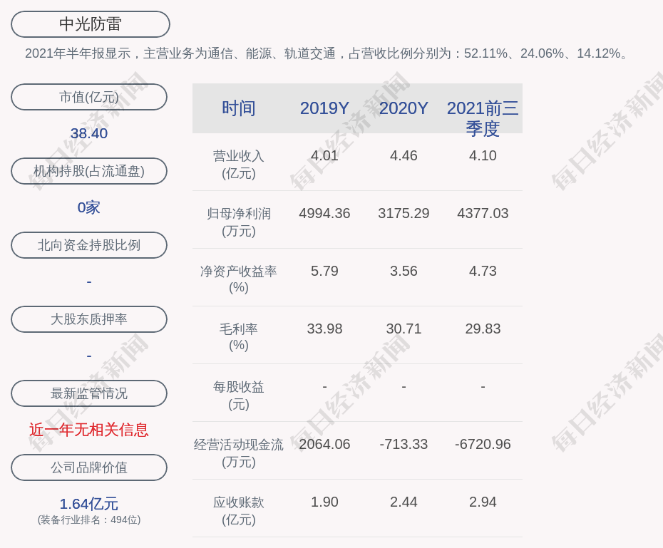 2021年半年报显示,中光防雷的主营业务为通信、能源、轨道交通,占营收比例分别为:52.11%、24.06%、14.12%。