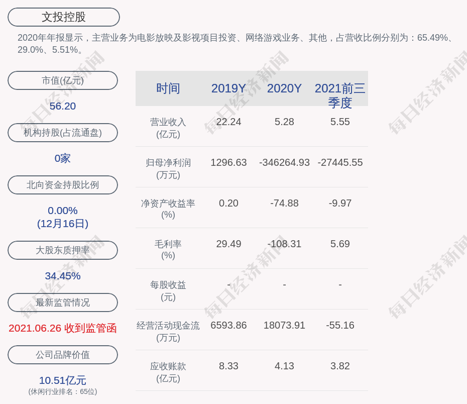2020年年报显示,文投控股的主营业务为电影放映及影视项目投资、网络游戏业务、其他,占营收比例分别为:65.49%、29.0%、5.51%。