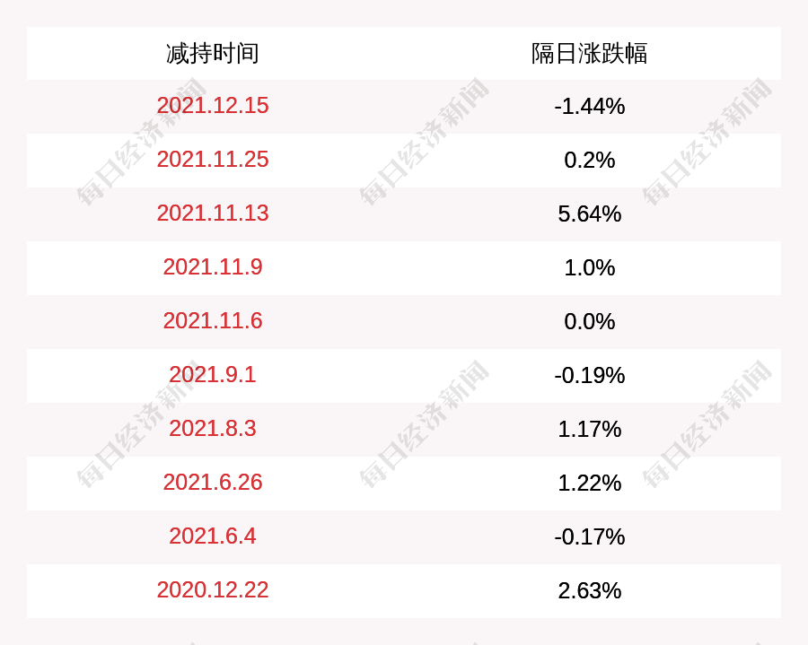 3. 亿嘉和上次发布减持公告是2021年12月15日,第二个交易日下跌1.44%,亿嘉和近一年共发布11次减持类公告。