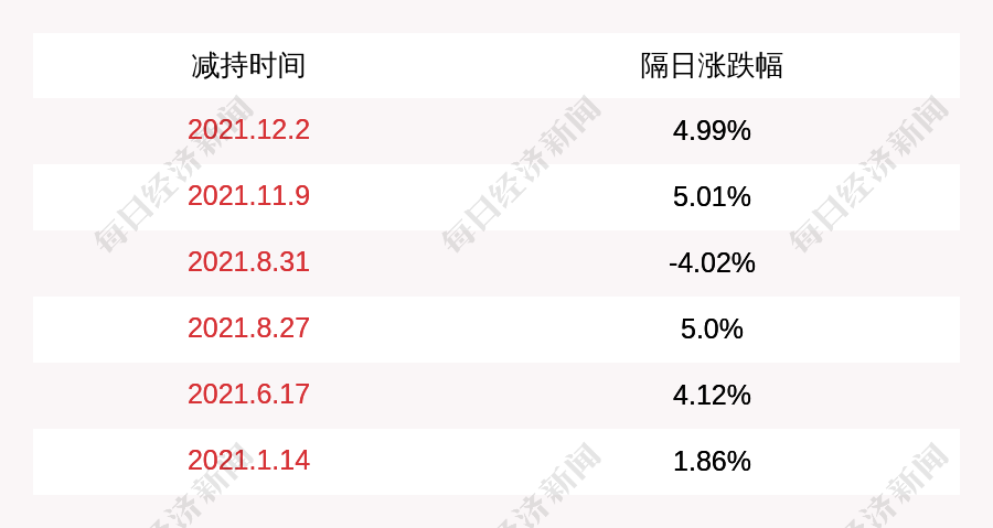 2. *ST德新上次发布减持公告是2021年12月02日,第二个交易日上涨4.99%,*ST德新近一年共发布7次减持类公告。