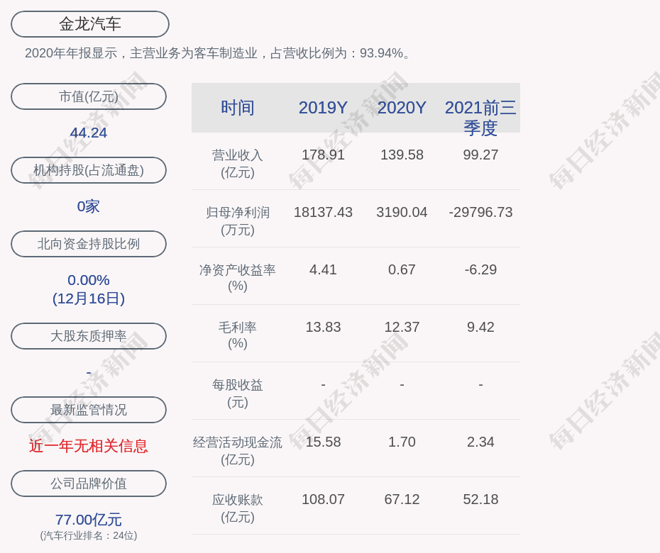2020年年报显示,金龙汽车的主营业务为客车制造业,占营收比例为:93.94%。