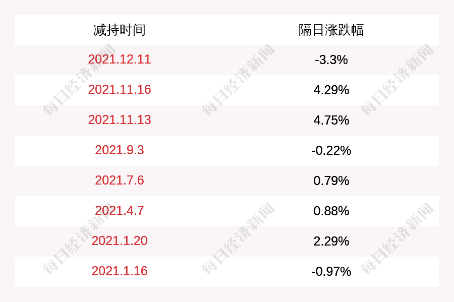 3. 岱美股份上次发布减持公告是2021年12月11日,第二个交易日下跌3.3%,岱美股份近一年共发布9次减持类公告。