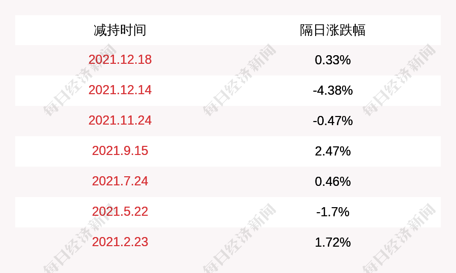 2. 朗迪集团上次发布减持公告是2021年12月18日,第二个交易日上涨0.33%,朗迪集团近一年共发布8次减持类公告。