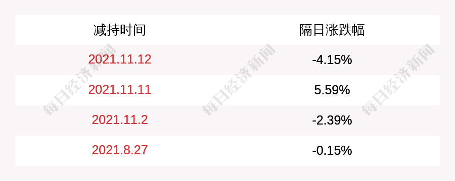 2. 卡倍亿上次发布减持公告是2021年11月12日,第二个交易日下跌4.15%,卡倍亿近一年共发布5次减持类公告。
