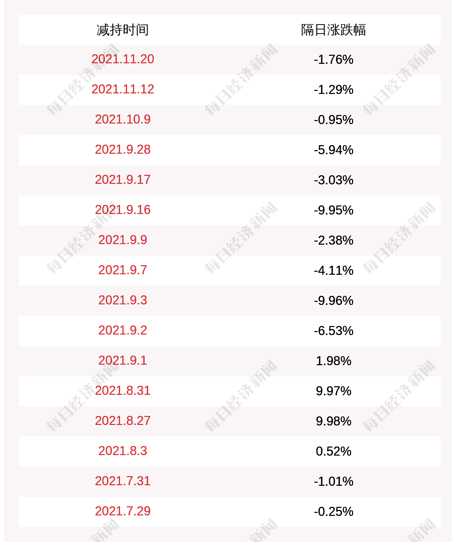 2. 青海华鼎上次发布减持公告是2021年11月20日,第二个交易日下跌1.76%,青海华鼎近一年共发布17次减持类公告。