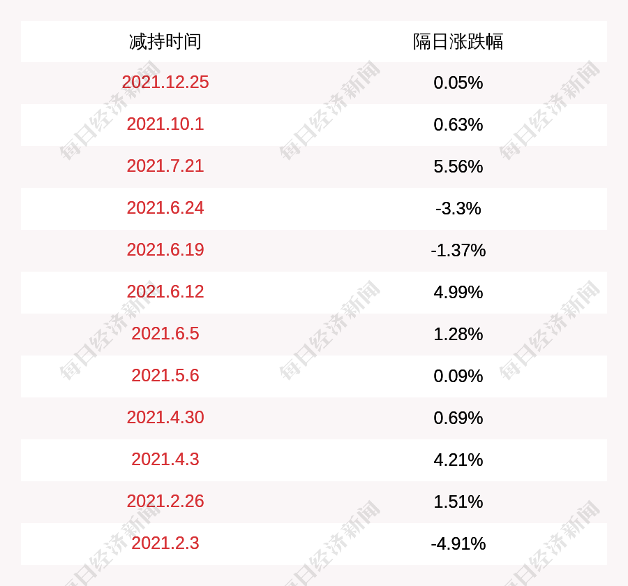 2. 英飞特上次发布减持公告是2021年12月25日,第二个交易日上涨0.05%,英飞特近一年共发布13次减持类公告。