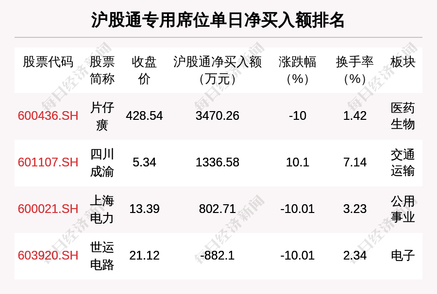 在龙虎榜中,涉及沪股通专用席位的个股有4只,片仔癀的沪股通专用席位净买入额最大,净买入3470.26万元。