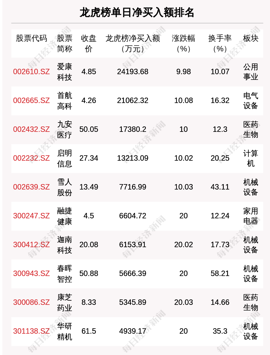 每经AI快讯,12月29日,共有38只个股上榜龙虎榜,爱康科技龙虎榜单日净买入额最多,达2.42亿元。