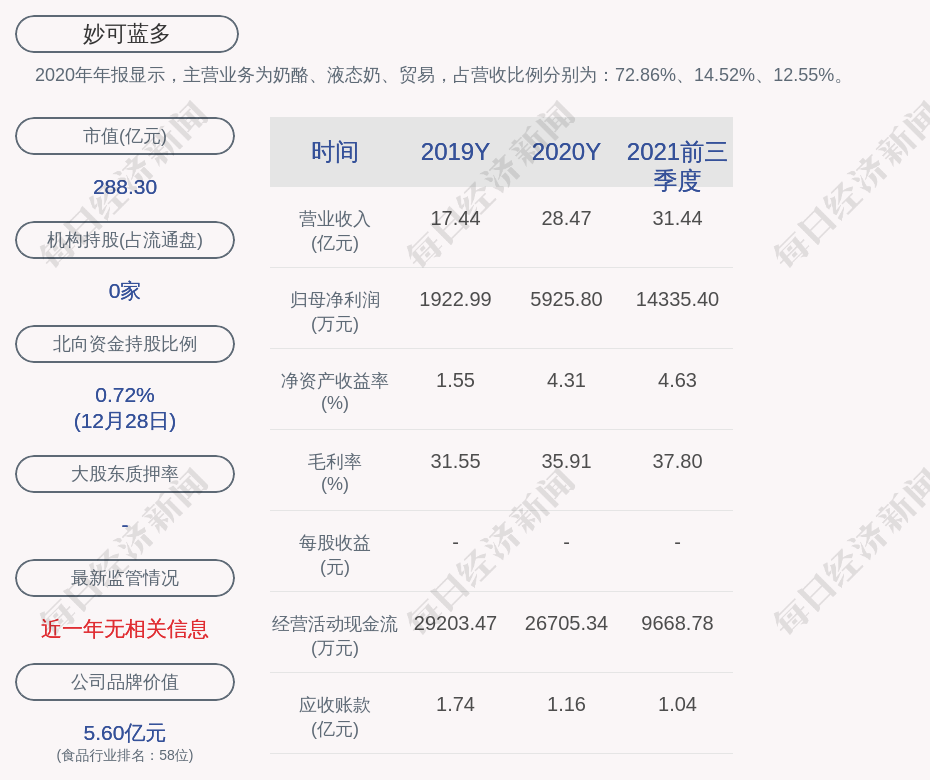 1. 妙可蓝多近30日内北向资金持股量增加189.67万股,占流通股比例增加0.47%;
