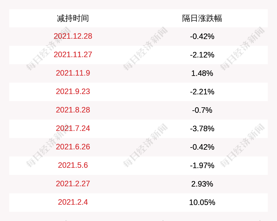 2. 思美传媒上次发布减持公告是2021年12月28日,第二个交易日下跌0.42%,思美传媒近一年共发布11次减持类公告。