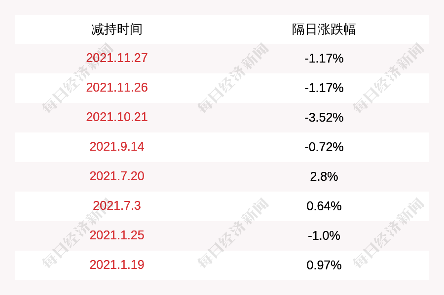 2. 闽发铝业上次发布减持公告是2021年11月27日,第二个交易日下跌1.17%,闽发铝业近一年共发布9次减持类公告。