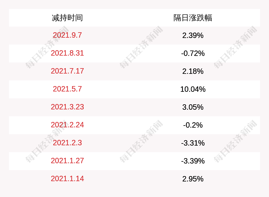 3. 贝因美上次发布减持公告是2021年09月07日,第二个交易日上涨2.39%,贝因美近一年共发布10次减持类公告。