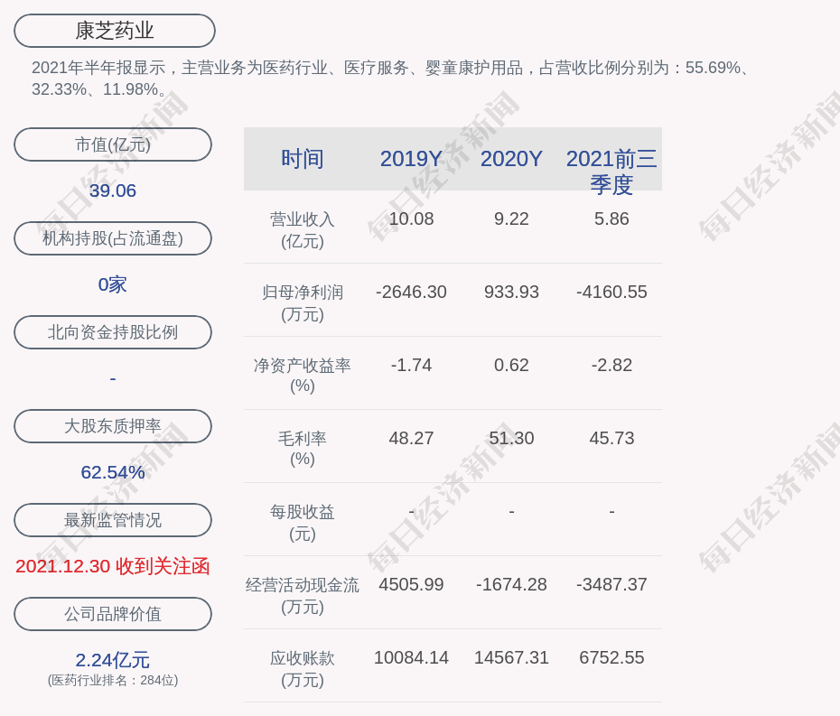 2021年半年报显示,康芝药业的主营业务为医药行业、医疗服务、婴童康护用品,占营收比例分别为:55.69%、32.33%、11.98%。