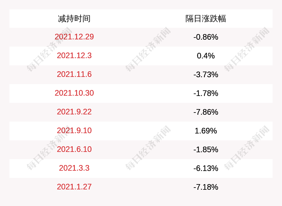 3. 金风科技上次发布减持公告是2021年12月29日,第二个交易日下跌0.86%,金风科技近一年共发布10次减持类公告。