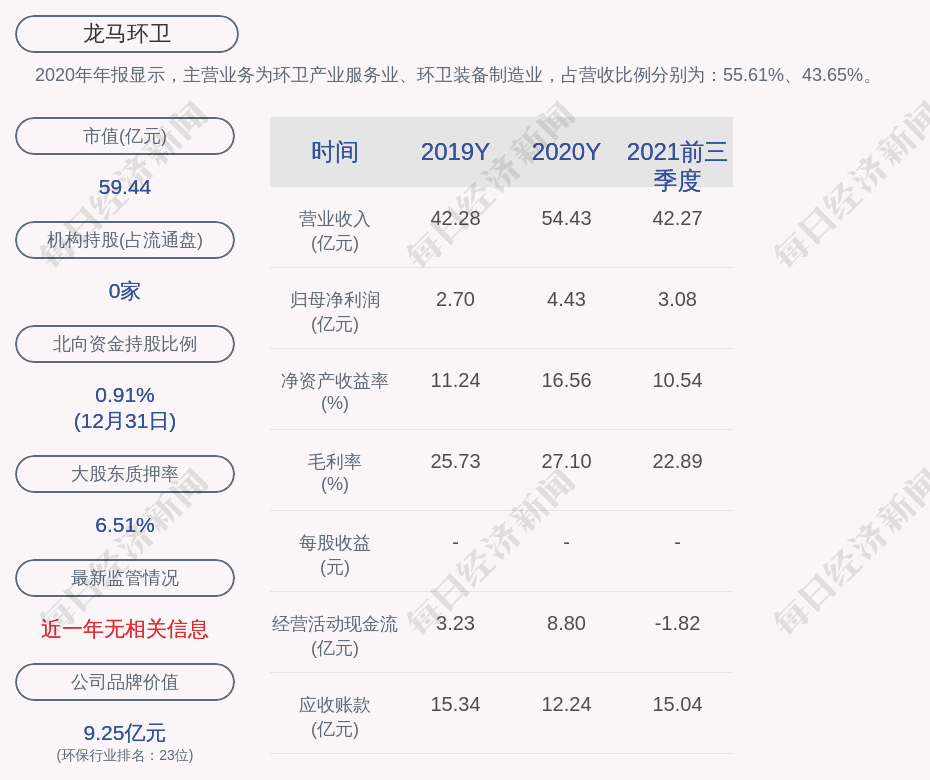 2020年年报显示,福龙马的主营业务为环卫产业服务业、环卫装备制造业,占营收比例分别为:55.61%、43.65%。