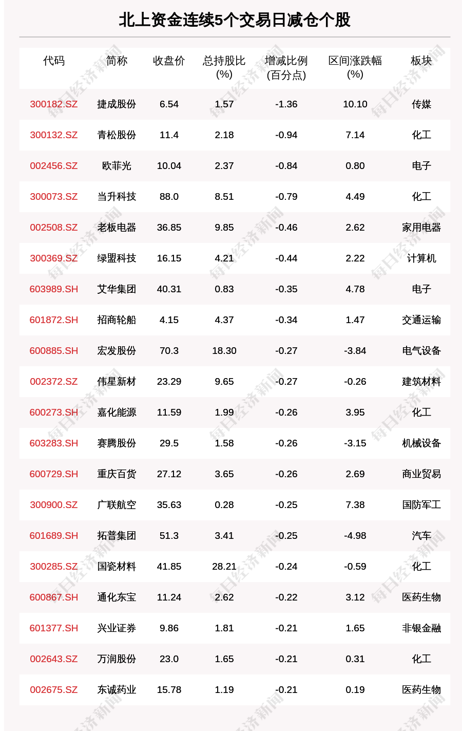 每经AI快讯,1月4日,北上资金连续5个交易日卖出44个股。北上资金连续5个交易日减仓个股中,捷成股份(300182.SZ,收盘价:6.54元)减持比例增幅最大,5个交易日减持1.36百分点,其他跌幅较大的个股包括青松股份(300132.SZ,收盘价:11.4元)、欧菲光(002456.SZ,收盘价:10.04元)、当升科技(300073.SZ,收盘价:88.0元),分别减持0.94个百分点、0.84个百分点、0.79个百分点。