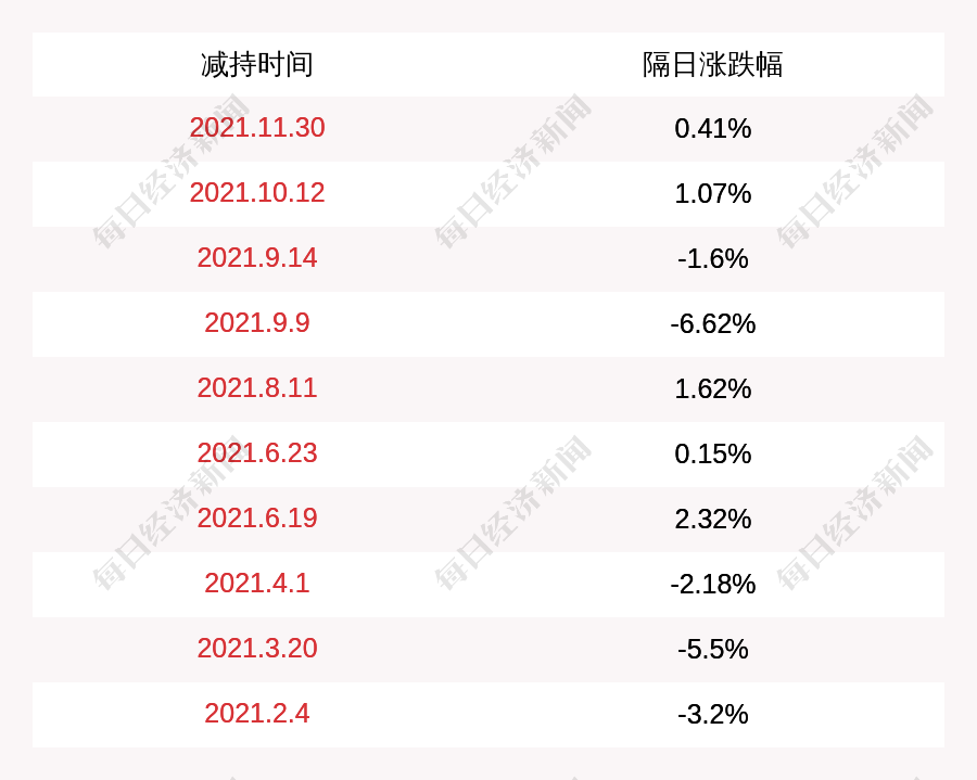 3. 方大特钢上次发布减持公告是2021年11月30日,第二个交易日上涨0.41%,方大特钢近一年共发布11次减持类公告。