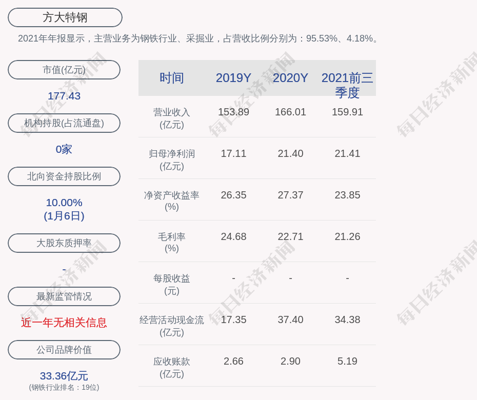 2021年年报显示,方大特钢的主营业务为钢铁行业、采掘业,占营收比例分别为:95.53%、4.18%。