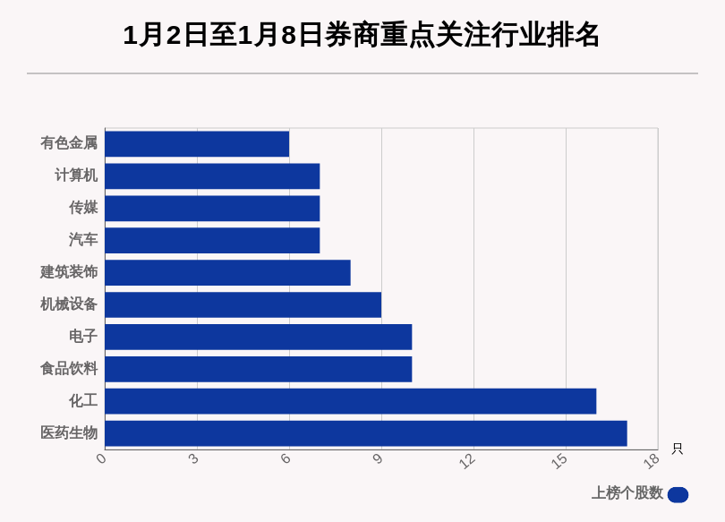 从券商对行业的关注度来看,券商关注个股数居前的行业分别是医药生物、化工、食品饮料。
