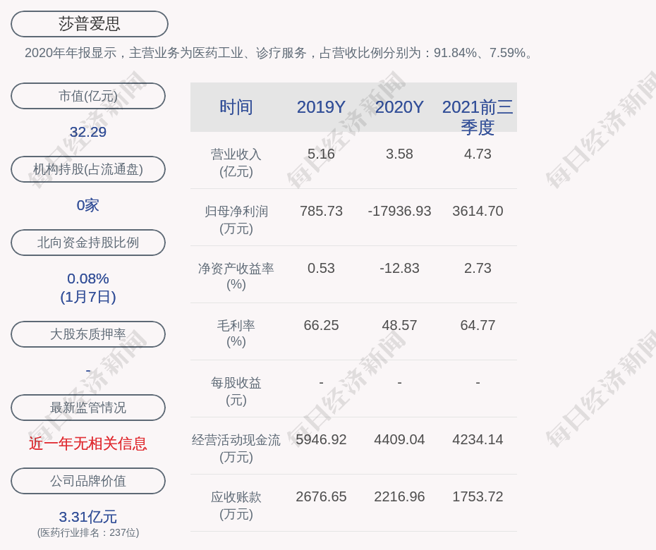 2020年年报显示,莎普爱思的主营业务为医药工业、诊疗服务,占营收比例分别为:91.84%、7.59%。