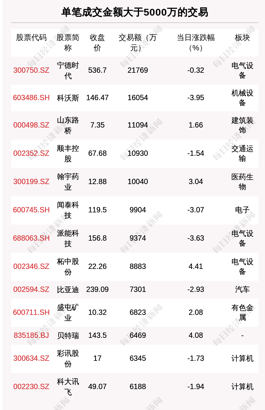 每经AI快讯,2022年1月11日,沪深两市一共发生137笔大宗交易,共成交26.24亿元,涉及91家上市公司。