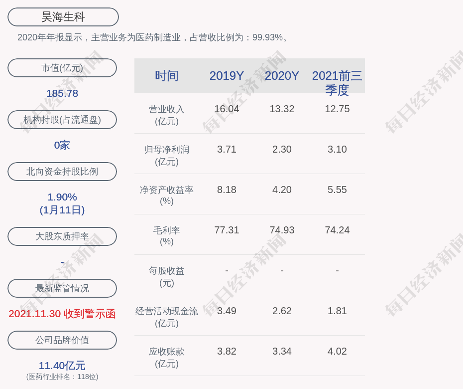 2020年年报显示,昊海生科的主营业务为医药制造业,占营收比例为:99.93%。