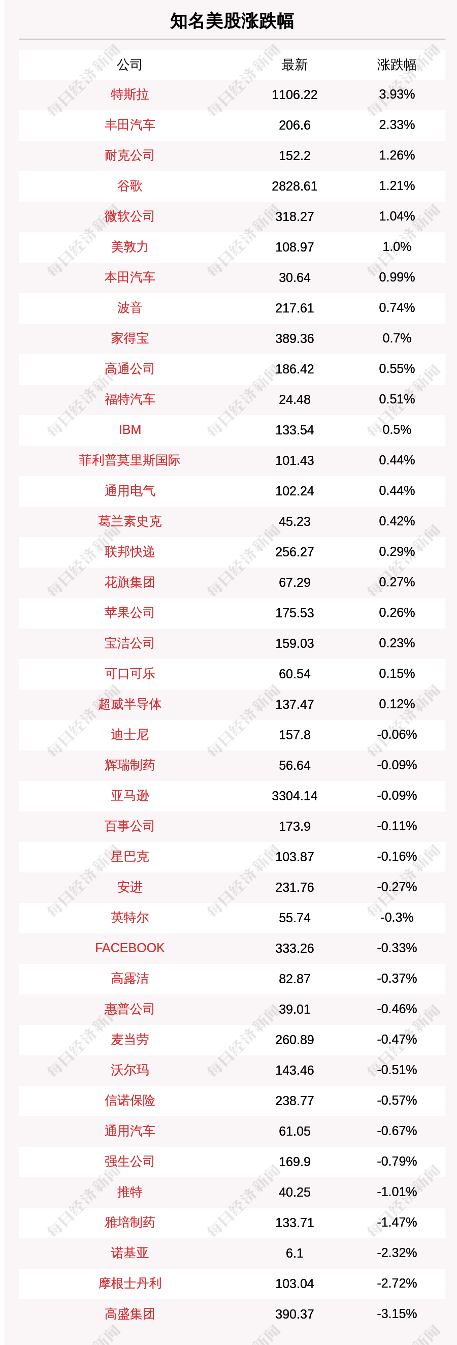 每经AI快讯:北京时间1月13日05:00,知名美股中特斯拉、丰田汽车、耐克公司、谷歌、微软公司涨幅居前,收盘分别上涨3.93%、2.33%、1.26%、1.21%、1.04%。高盛集团、摩根士丹利、诺基亚、雅培制药、推特跌幅居前,收盘分别下跌3.15%、2.72%、2.32%、1.47%、1.01%。