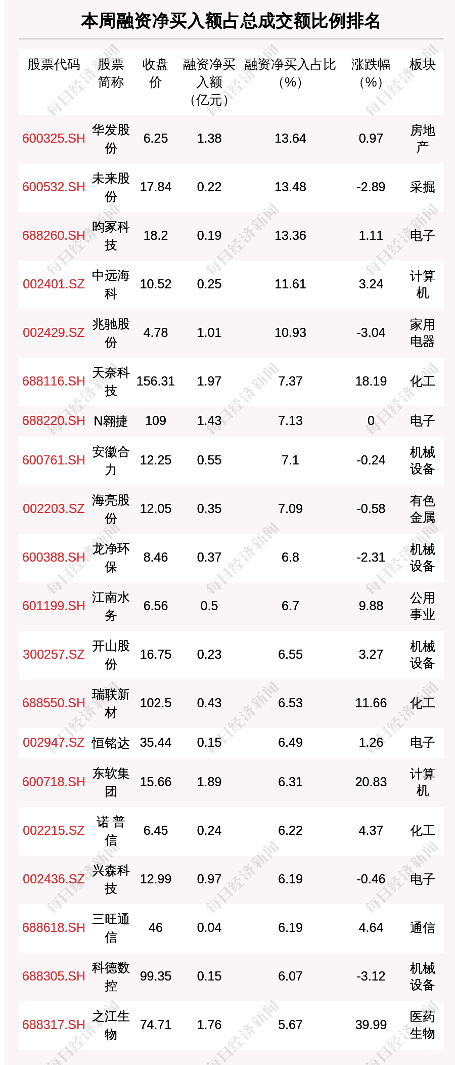 两市共有5只股票融资净买入额占总成交金额比例超10%,其中华发股份、未来股份、昀冢科技排名前三,占比分别为13.64%、13.48%、13.36%。