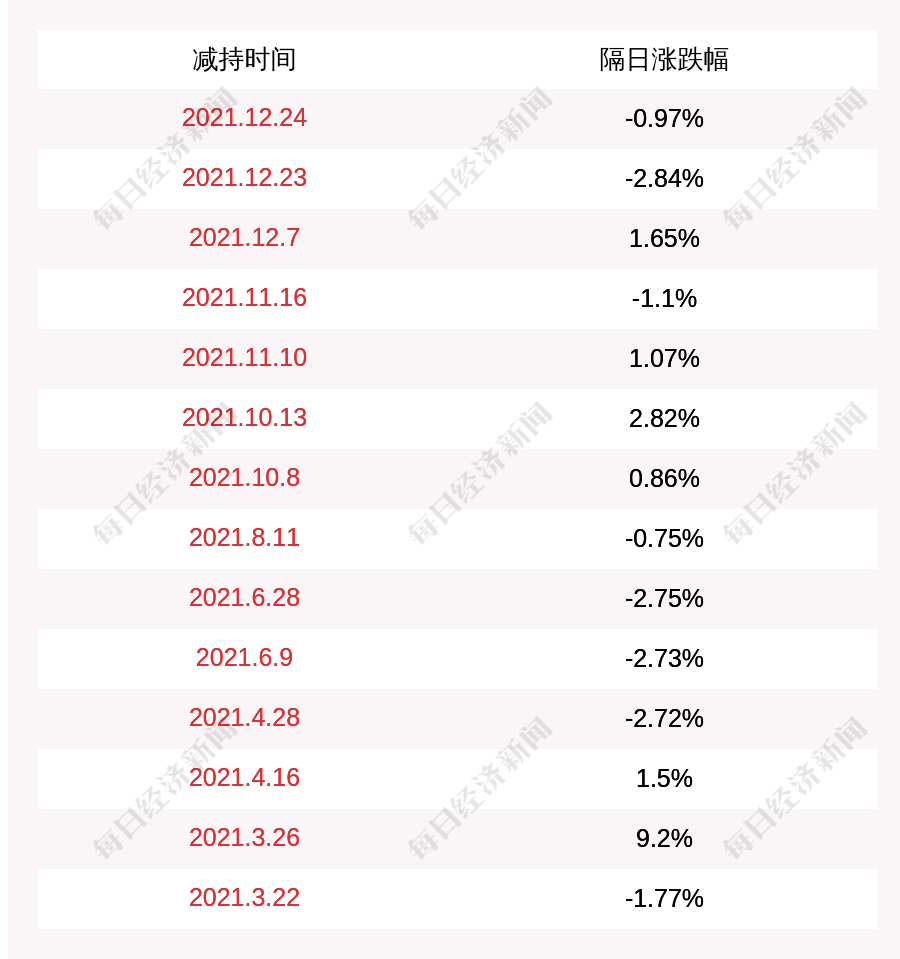 2. 康跃科技上次发布减持公告是2021年12月24日,第二个交易日下跌0.97%,康跃科技近一年共发布15次减持类公告。